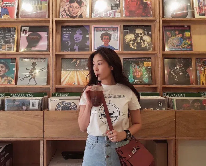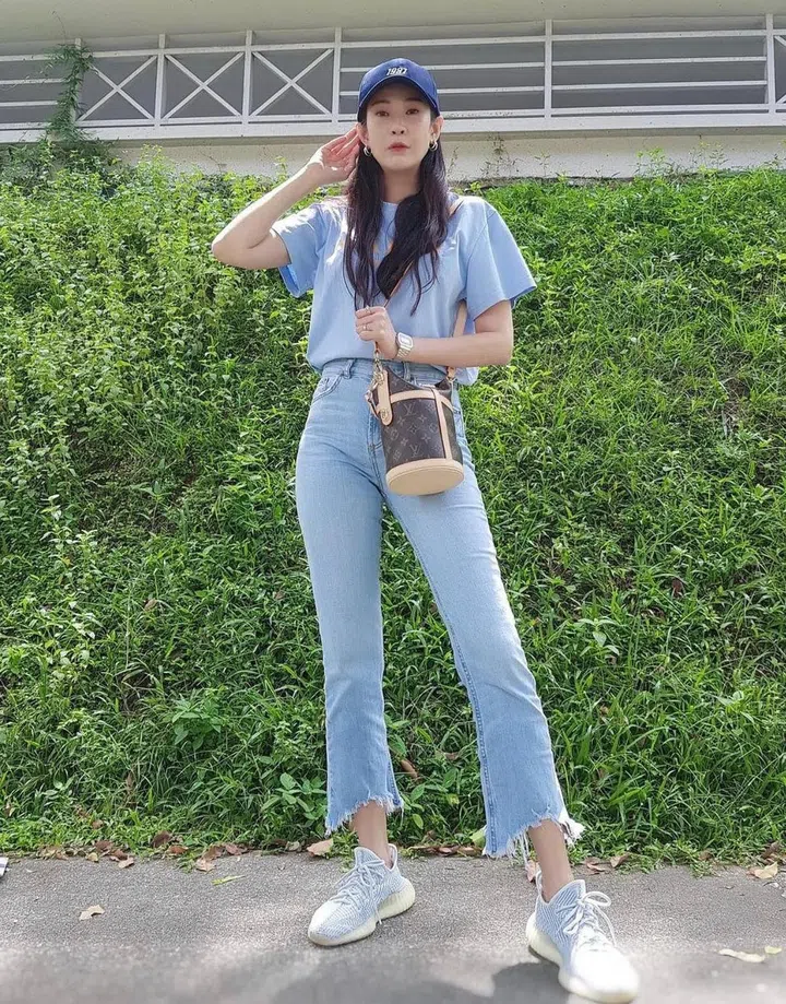 跟刘子绚学习平日休闲穿搭, 她身着Max Mara 印花T恤搭配休闲牛仔裙,闲暇随意,尽显自然大气,配上Hermes的Jypsiere单肩包,呈现个性之美。Hermes Jypsiere 于2010年上市,是品牌包款中较休闲年轻的款式,多以Clemence牛皮制成,可单肩或斜挎,外形立体,洋溢着青春气息。