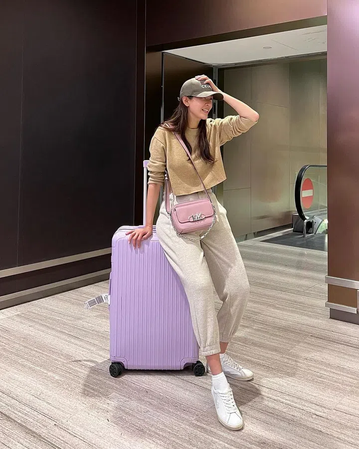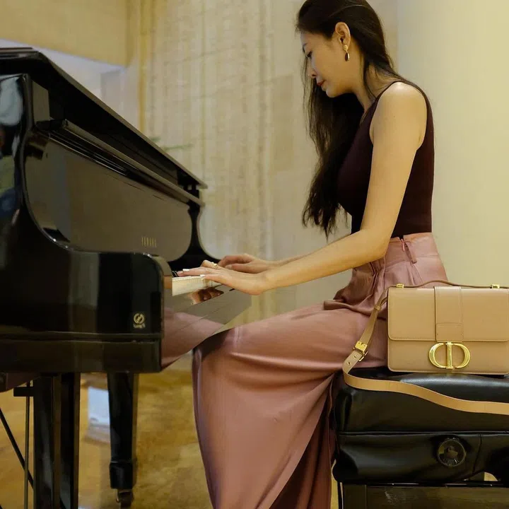 之前我们看到了30Montaigne的超迷你版本,刘子绚也有原版Dior 30Montaigne手袋!以温柔的玫瑰粉色调,搭配利落大方的方形包身,轻松打造优雅时尚的造型。