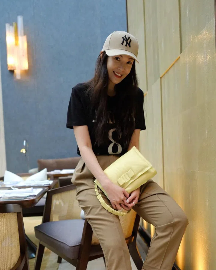 Salvatore Ferragamo的Viva Bow手袋最早于2020秋冬系列上市,采用衬垫式皮革演绎简洁的方形包身,呈现像是枕头般拥有空气感。包扣沿用了品牌1978年的经典 Vara 蝴蝶结元素,透着甜美感。刘子绚选择了新季的亮黄色包款,搭配一身休闲装扮,依然亮丽迷人。