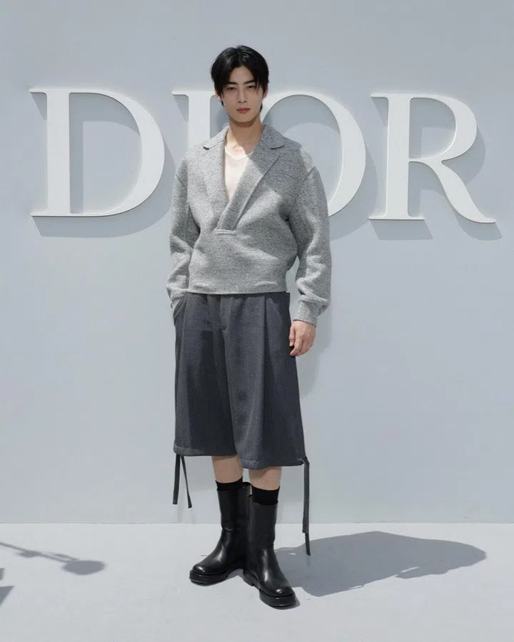 不久前空间狮城出席Dior快闪店的车银优,以品牌代言人之姿出席2024春夏男装秀,他以一袭笔挺的灰色上衣搭配时髦中裤,脚踩黑色皮靴,展现非凡魅力。