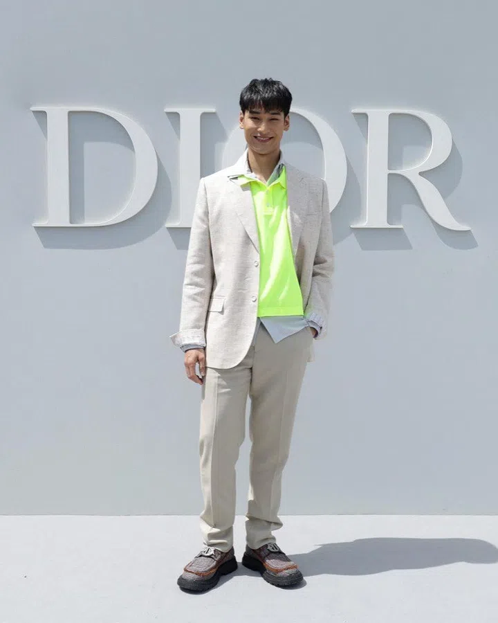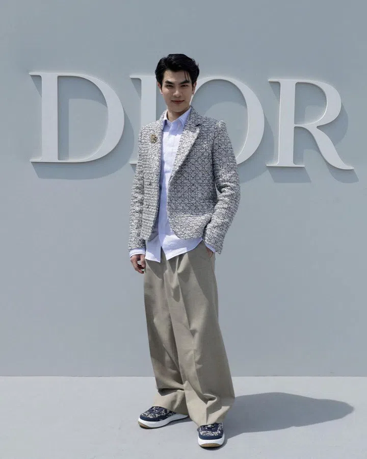因主演泰国人气BL剧集《黑帮少爷爱上我》的泰国男星张泽毅Phakphum Romsaithong(Mile)和陈立波Nattawin Wattanagitiphat(Apo)在亚洲各地迅速走红,吸引了大量粉丝关注。Dior 2024春夏大秀前夕,品牌正式宣布二人成为最新品牌大使。Mile选择了一身大地色系造型,浅色衬衫外搭西装外套,配上褐色长裤,尽显潇洒气质。