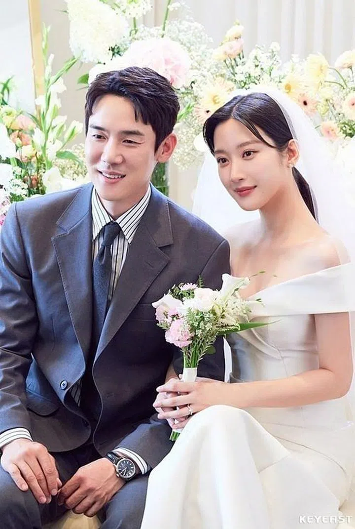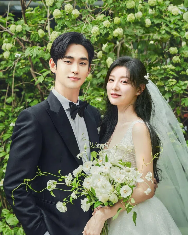 暌违三年回归小荧幕的金秀贤将在《泪之女王》(Queen of Tears)和金智媛展开一段引人入胜的爱情故事。除了“双金”化身夫妻档引发热烈讨论,这也是金秀贤继《来自星星的你》、《制作人的那些事》,三度与编剧朴智恩合作。新剧在3月9日播出前公开男女主角的婚礼照,金秀贤身着黑色西装,金智媛以一身平口削肩白色婚纱,搭配浪漫落地头纱,宛如童话故事里的王子与公主。