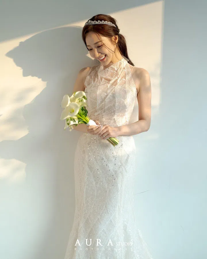 申敏儿在剧中选择了韩国婚纱品牌Bride and You的轻婚纱造型,雪纺短袖隐约露出里头的细肩带新娘缎礼服,为整体增添层次感和设计细节。