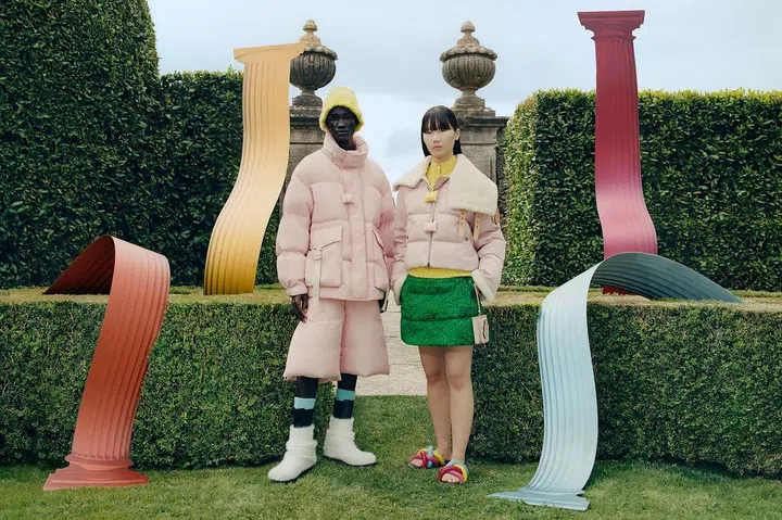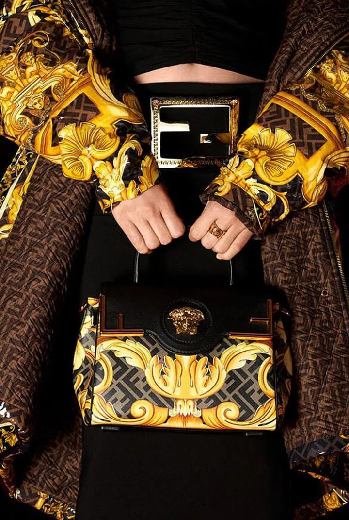 意大利时装家族Fendi和Versace在2022春夏米兰时装周上发布了“Fendace”合作系列,两家品牌的设计师互相借鉴、各取所长,从彼此典藏的档案中寻找灵感,用色彩醒目的印花、宝石镶嵌等工艺展现出 Versace “极尽奢华“的穿衣理念和 Fendi 的精致优雅格调。