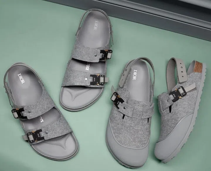 Dior 在2022 冬季男装系列首度与德国鞋履品牌 Birkenstock 合作,推出“Dior by Birkenstock”联乘鞋款。此次联名采用 Milano 和 Tokio 两种型号,前者是为自然活动爱好者所开发的户外凉鞋;后者则是一双防护鞋,适合需要长时间步行或站立的人穿着。新鞋款结合Dior的标志性设计元素,搭配毛毡、麂皮材质,并以秋冬季色调呈现出沉稳格调。