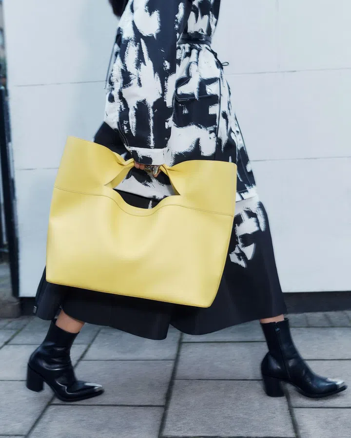 Alexander McQueen 2022早秋系列主打手袋——The Bow 托特包。共有两个尺寸,新包以简约利落的包身搭配切口手柄,并通过剪裁和缝制呈现一枚俏皮的蝴蝶结造型,十分吸睛。