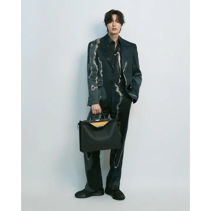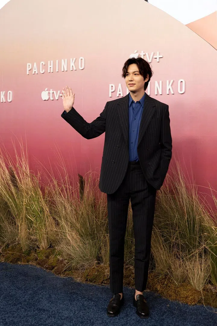 生活中的李敏镐出席公开活动时,也经常以知性稳重的西装造型示人。早前出席《柏青哥》在洛杉矶举办的全球首映会,便身穿黑色条纹西装,内搭蓝色衬衣,脚踩黑色皮鞋亮相。