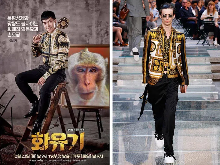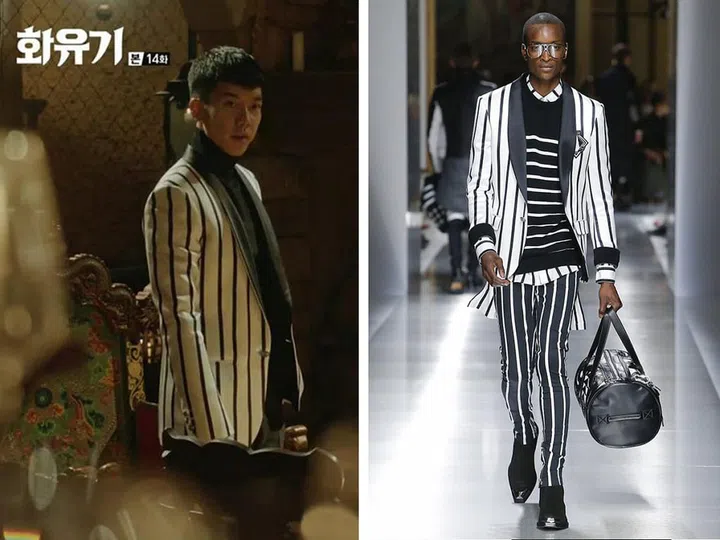 时尚李胜基超时尚“孙悟空”造型韩国刚播完的《花游记》是改编自西游记经典神话的现代版韩剧,饰演孙悟空的李胜基在剧中的造型几乎都是大品牌,这里为你整理“孙悟空”的时尚穿搭。文 / DONSON / 21 Mar 2018balmain, dolce & gabbana, prada, saint laurent, versaceShare this article本文取自《女友》Read more -VERSACE Signature 17 Print衬衫 1/10李胜基在韩剧《花游记》常以Versace造型亮相,拍摄宣传海报是同样也穿上品牌经典的巴洛克风印花衬衫。VERSACE Baroque衬衫 2/10黑白的巴洛克风印花衬衫为绅士的造型增添王族般的奢华。VERSACE Baroque浴袍 3/10李胜基在家中的居家服一点也不马虎,身上的Versace黄色浴袍完全不输全智贤在韩剧《蓝色大海的传说》的wardrobe。SAINT LAURENT Music Note套衫 4/10银色的音乐符图案为沉稳暗黑的造型增添强烈的时尚个性。PRADA Comics衬衫 5/10品牌今季主打“漫画”印花时装,李胜基穿着该系列条纹衬衫,绅士中不失玩味。BALMAIN西装外套 6/10抢眼的黑白条纹西装外套出自Balmain 2018春夏系列,搭配黑高领上衣让李胜基穿出暖男魅力。BALMAIN外套 7/10双排扣黑色软呢外套胸口的刺绣徽章设计让李胜基散发时尚的贵族学院风。NEIL BARRETT剪羊毛外套 8/10格纹衬衫及米色西装外套外罩Neil Barrett 2017秋冬系列剪羊毛外套,让李胜基展现型男魅力。SONGZIO条纹西装 9/10条纹西装外罩风衣,穿出具层次感的英伦风。DOLCE & GABBANA印花棒球外套 10/10李胜基以Dolce & Gabbana 2017秋冬系列印花棒球外套搭配黑西裤及皮靴,完美演绎时尚宫廷风。balmain, dolce & gabbana, prada, saint laurent, versaceShare this article