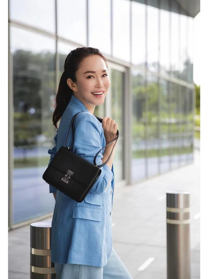 阿姐范文芳手中的包包出自顶级珠宝品牌卡地亚(Cartier)——Double C de Cartier手袋系列于2021年推出,以简约利落极简方形轮,搭配柔软光滑的皮革,呈现永恒典雅的魅力。
