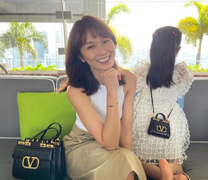 2021秋季不能错过的新款手袋,Valentino Garavani Rockstud Alcove手提包选用两种皮革缝制,缀有铆钉形设计的经典VLogo标志,搭配两旁的旋转锁扣,在保留品牌特色的同时,带来摩登风貌与个性。白薇秀和女儿分别以中号和迷你手袋入镜,特别可爱俏皮。