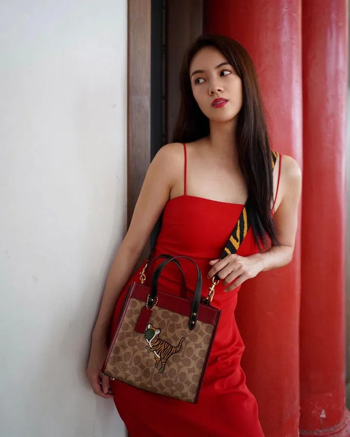 2022年迎来农历虎年,Coach的品牌吉祥物 Rexy 小恐龙装扮成小老虎呈现于Field 托特包之上,搭配Signature C老花帆布制成,点缀红色皮革镶边和吊牌,极具喜庆氛围。