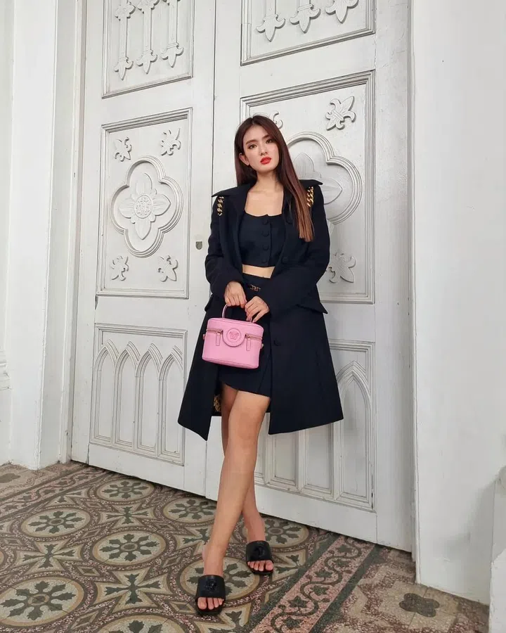超迷你手袋近几季越来越流行,手掌般的大小,可爱至极。胡佳琪所背的Boy Chanel超小手袋是限定款,出自Chanel的礼盒,于2019/20高级手工坊系列推出。礼盒中共有4款超迷你尺寸的Chanel经典包:Chanel Classic、Chanel 2.55、Boy Chanel、Gabrielle,成为女人最好的配饰!
