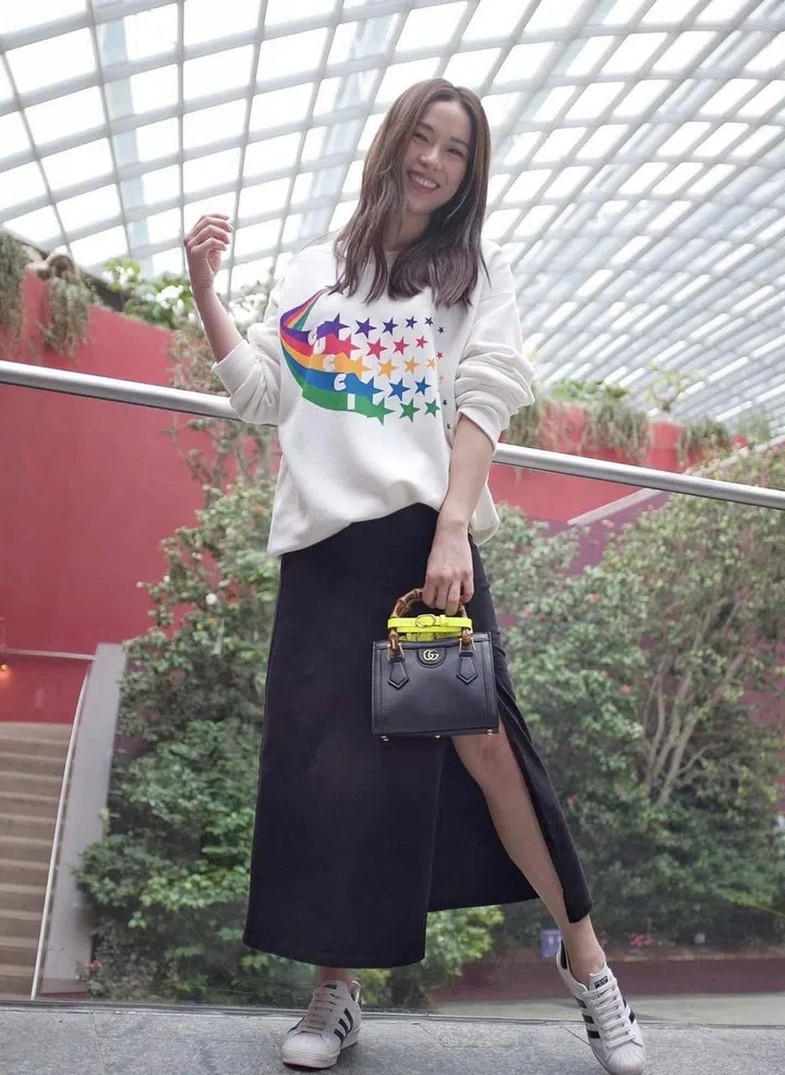 演员罗美仪的斜挎式翻盖包出自奢华旅行箱品牌Rimowa的Never Still系列,这款Mango橙色手袋以坚韧帆布和全粒面皮革等材料制造,具有可调节式背带,是现代生活的理想手袋之选。