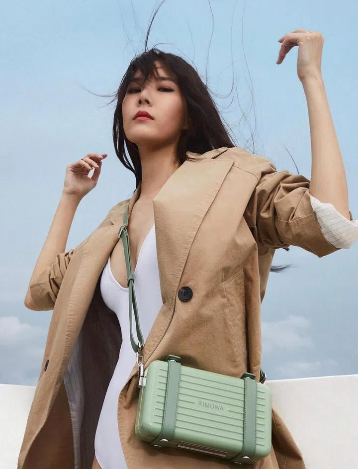 自Rimowa与Dior的联名合作后,品牌也陆续推出新色调Personal小型行李箱包袋系列。黄思恬所背的色号是仙人掌色,采用了品牌经典的铝制外型,并搭配有可调节、可拆卸的皮革背带,方便在不同场景进行搭配。