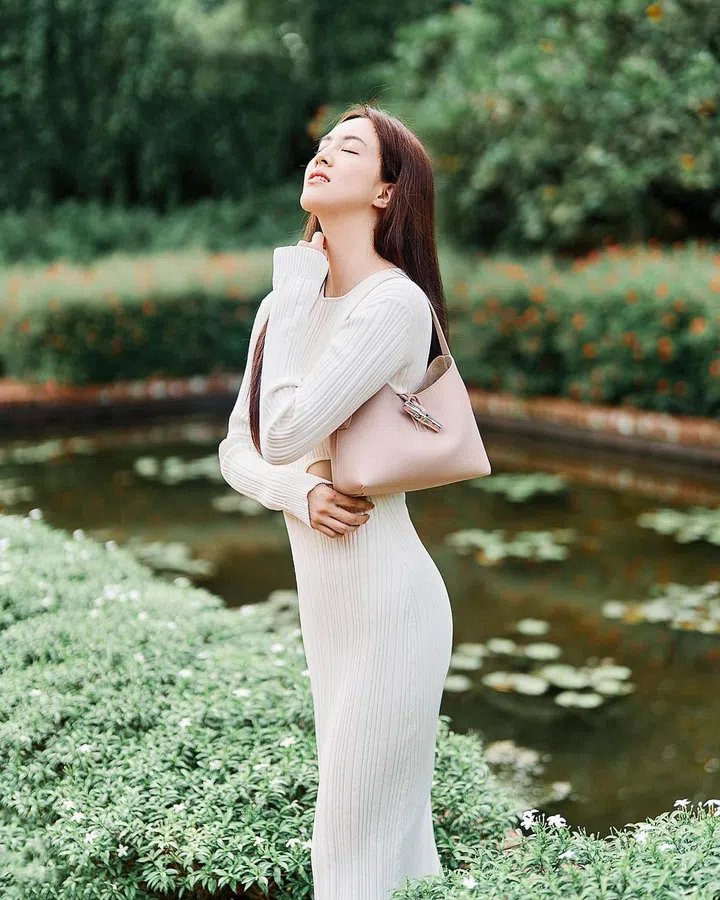 本地演员郑颖身着Longchamp 2021秋冬系列灰色造型,搭配小巧可爱的Roseau系列手提包。新包包饰有醋酸纤维链状大肩带,散发浓郁的七十年代气息,提供多种搭配方式,融合简约风格和精致格调。