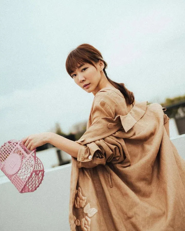 陈欣淇手中的Basket篮子包出自Fendi 2021春夏系列,以回收塑料打造,适合当做野餐篮或花篮,带去参加花园聚会。别致醒目的包款设计,也能点亮整体造型。