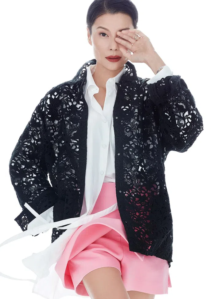 棉质宽松上衣、真丝蕾丝外套、真丝短裤/Valentino。