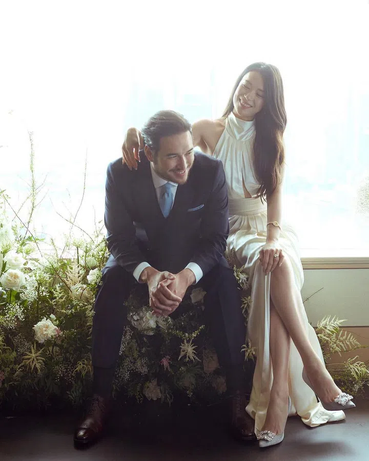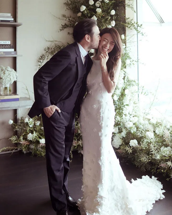 林慧玲和丈夫Matthew Webster选择在新加坡丽嘉登美年大酒店室内拍摄婚纱照,由The Wedding Atelier精心策划,现场布满白色玫瑰花,呈现自然清新的格调,与林慧玲简约大方的婚纱造型风格一致。无需过于华丽的排场,小两口以自然的方式展现满满的幸福。