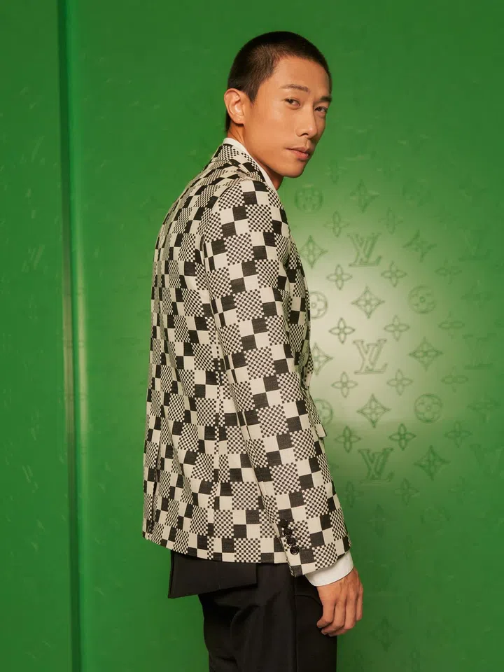 本地艺人陈泂江的时装秀初体验献给了Louis Vuitton。他这一身黑白格纹西装造型出自品牌的2021春夏系列,廓形笔挺,缀有Damier图案,一展绅士风度。