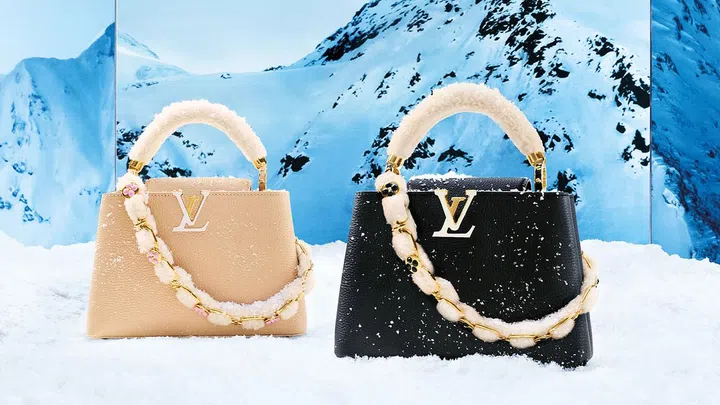 滑雪季当然少不了毛绒绒的羊毛元素,品牌在标志性手袋上注入温馨保暖的羊毛材质,或是取材再生尼龙。其中,Louis Vuitton标志性Capucines手袋取材全粒面Taurillon皮革精制而成,以百搭的驼色和黑色亮相,配上温暖的同色羊毛编织链带和手柄,宛如一层冬日积雪。