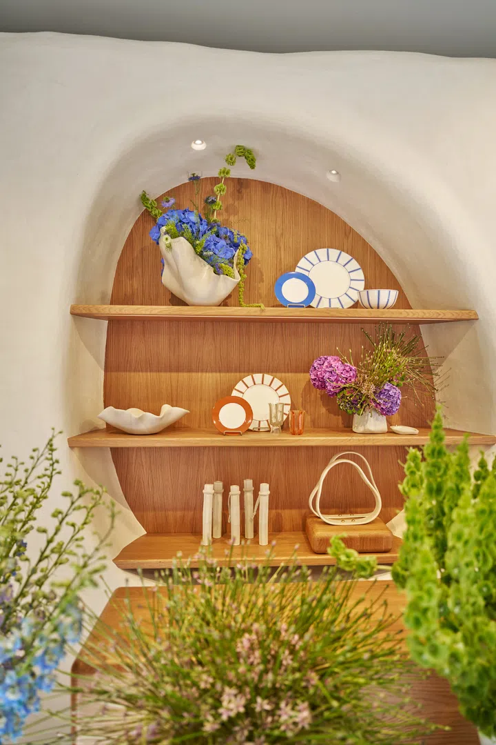 位于风景如画的意大利托斯卡纳,马尔米堡(Forte dei Marmi)是知名的夏季度假胜地。Loro Piana再度进驻当地中心的Il Fioraio花店,将其打造成一处汇聚服饰、花艺与艺术的夏日空间。圆形的陈列区域采用象牙白黏土墙面、橡木与栗木家具、内嵌式圆弧展示架与条纹躺椅,洋溢浓浓的地中海假日气息。期间限定店除了展售2025夏季系列,也精选各式鲜花,为度假居所或特别时刻增添自然美感。