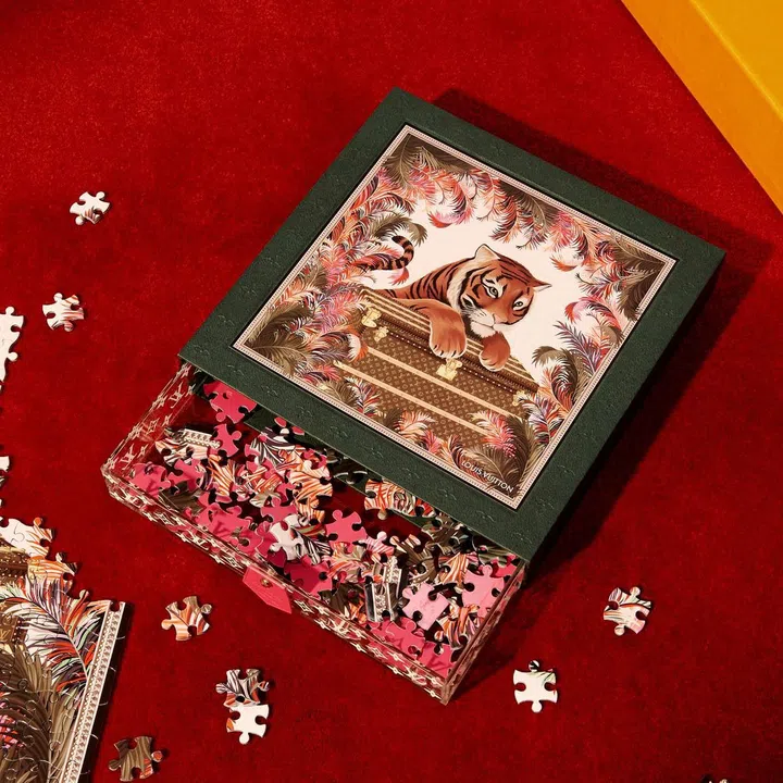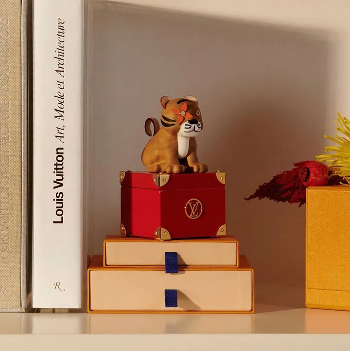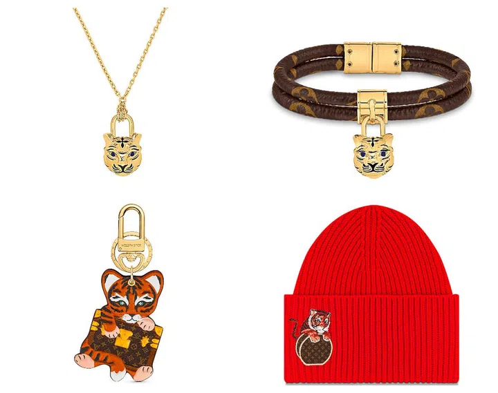为迎接农历新年,Louis Vuitton 特别发布名为"Precious Tiger"的虎年限定系列,服饰珠宝以金属虎首为基调,显得精致又霸气。品牌的生活用品和方巾系列,描绘出老虎盘踞Louis Vuitton经典硬箱的可爱画面,让人看了心情愉悦。