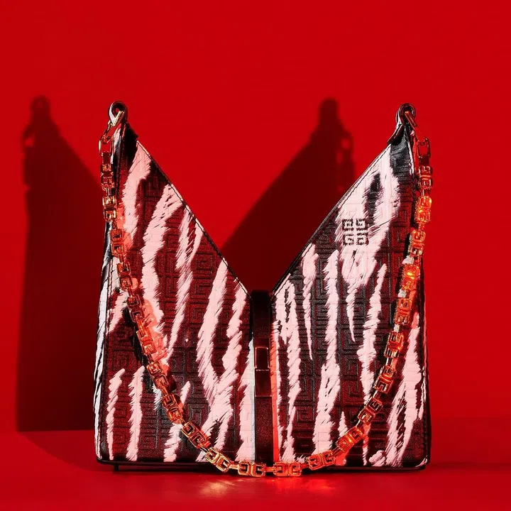 在中国传统文化中,虎代表着勇气与力量。Givenchy 标志性的Cut-Out手袋在农历新年之际换上黑白虎纹,搭配金色立体 4G 链条,既可作为装饰链也可以作为短肩带使用,看起来气势蓬勃,十分霸气。