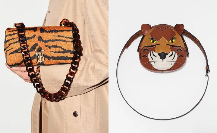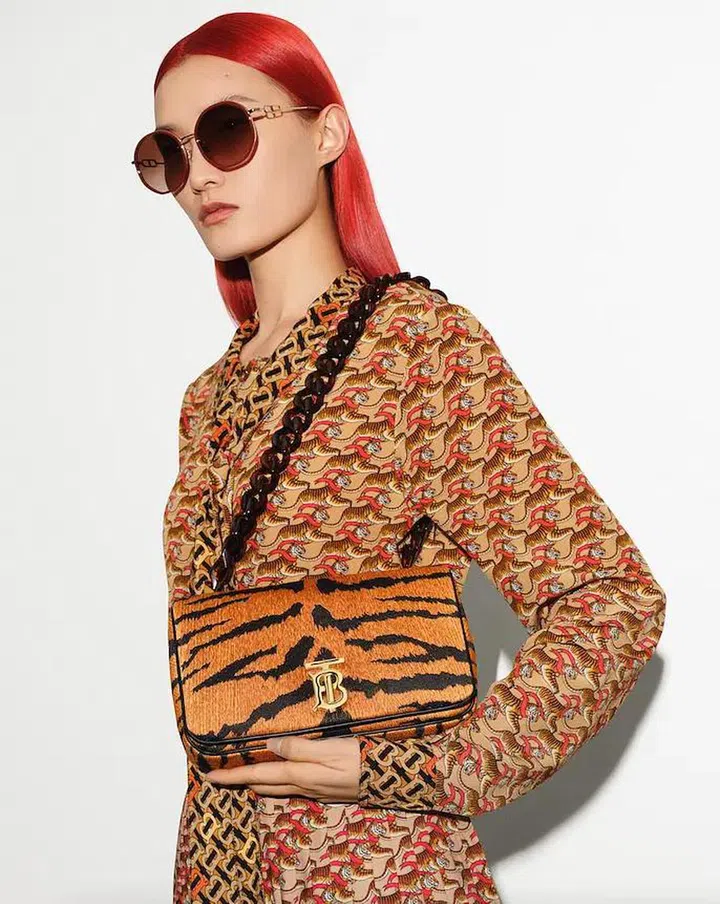 Burberry 2022虎年限定系列的Lola手袋点缀着鲜艳醒目的老虎斑纹印花,另外还有化作威严的虎首造型包款,背在身上鬼马俏皮。