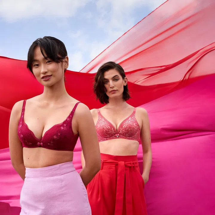 德国内衣品牌Triumph在新年节庆季特别推出具有节日风格的Auqa系列,迎接新一年的到来。系列中呈现粉红色及酒红色两款专属配色,搭配超轻水波衬垫有效托高,加上舒适柔软的内衬托出完美胸型,奢华的质感旨在为新年带来美好的憧憬。