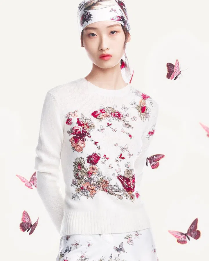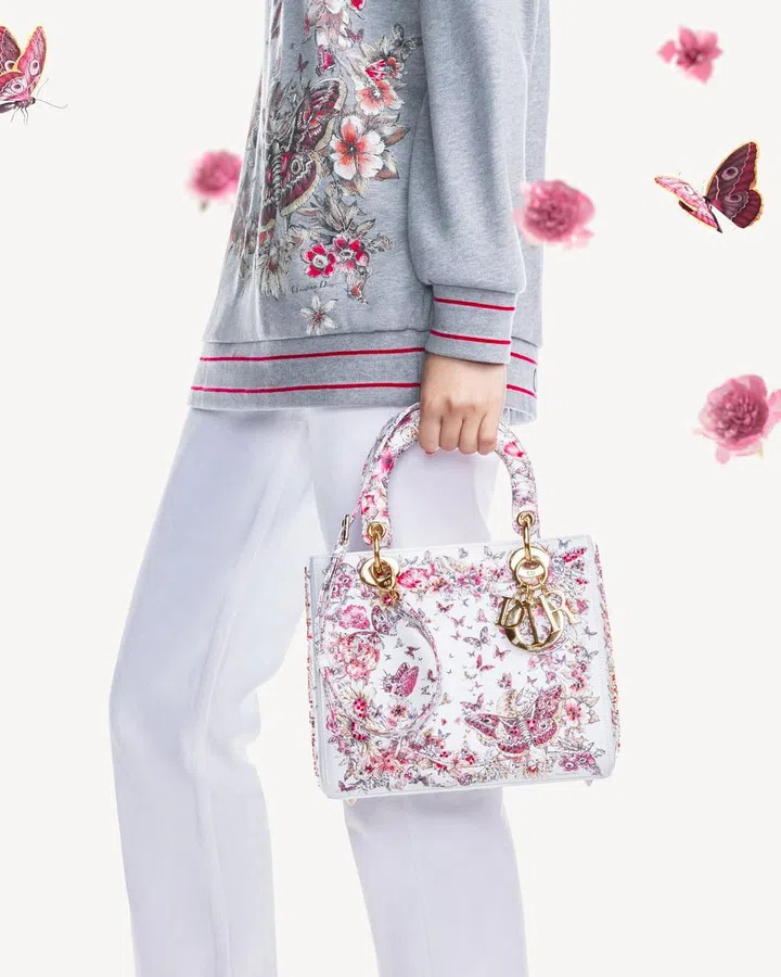 Dior今年的农历新年系列充满梦幻与浪漫,以特别设计的蝴蝶图案为新春增添节日喜庆,呈现在成衣单品、珠宝和配饰之上。充满诗意的彩蝶停伫于卫衣、围巾、D-Connect运动鞋,以及经典Lady Dior、Dior Book Tote和Saddle手袋上,颂扬欣欣向荣的自然景致。