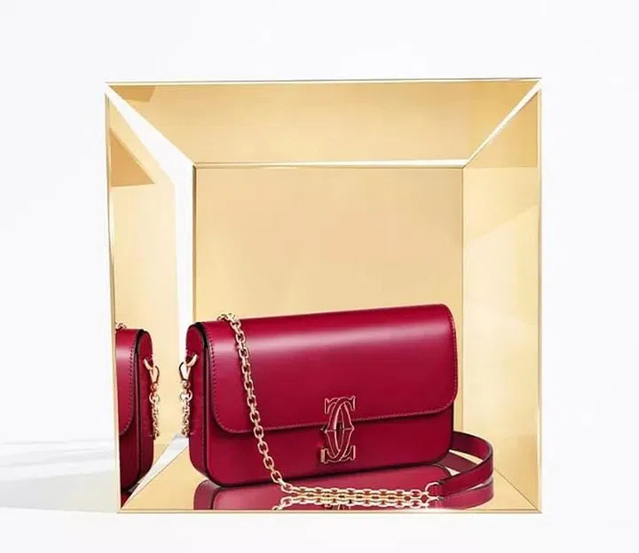为庆祝中国新年,高级珠宝品牌卡地亚(Cartier) 特别推出一款樱桃红色Double C de Cartier 小牛皮肩背包,呈现光泽质感与成熟韵味。手袋中央的“Double C”锁扣精致夺目,涂绘包身同色珐琅,让鲜明的金属扣如珠宝般闪耀迷人。