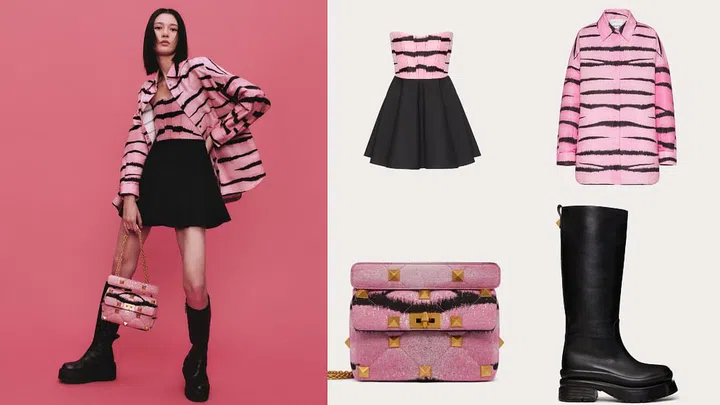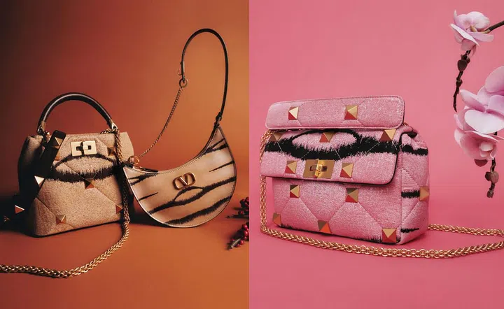 Valentino 2022中国新年系列“Valentino Tiger 1967”,灵感源自1967年品牌的标志性虎纹印花,1967-68秋冬高定系列的第一套服装便是以虎纹图案呈现。恰好适逢虎年,品牌将历史图库中的虎纹印花进行重新诠释,为成衣、包袋、鞋履及配饰等单品赋予年轻活力,将传统文化和现代风格相互融合,创造出不落俗套的虎年新装造型。