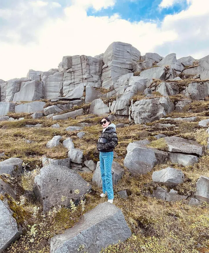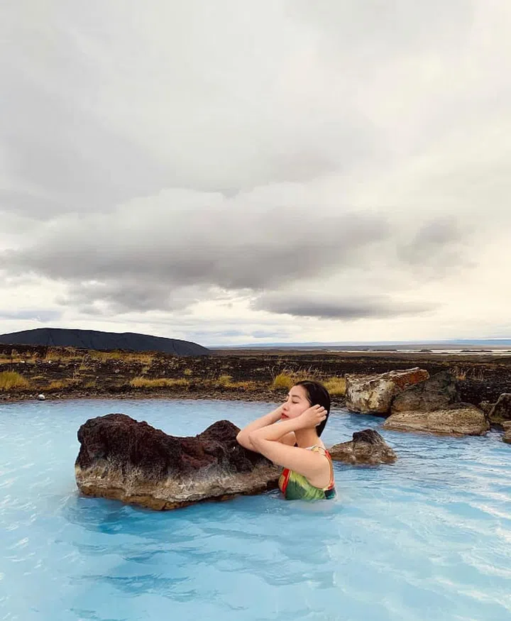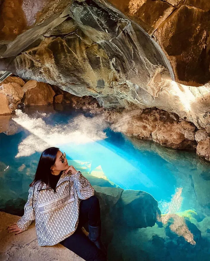旅游期间,户外穿搭讲究舒服和功能性之余,时髦度也一样不能落下。陈雪铃置身冰岛的梦幻景点—Grjotagja Cave洞穴温泉,一身轻便又保暖的Dior连帽风衣,配搭黑色牛仔裤,穿出醒目率性的风格。