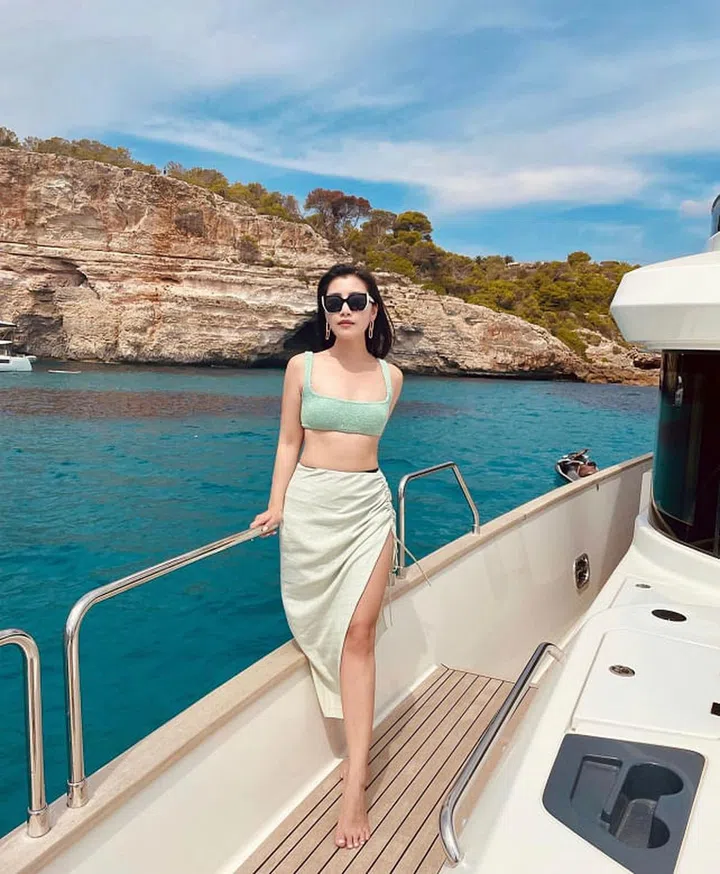 与夫婿育有一个可爱女儿的陈雪铃,当了妈咪后依然保持曼妙的少女身形,在西班牙小岛Balearic Island乘坐豪华游艇遨游四海,以针织泳装上衣,配搭墨镜和简约耳饰,展现清新迷人的阳光气息。