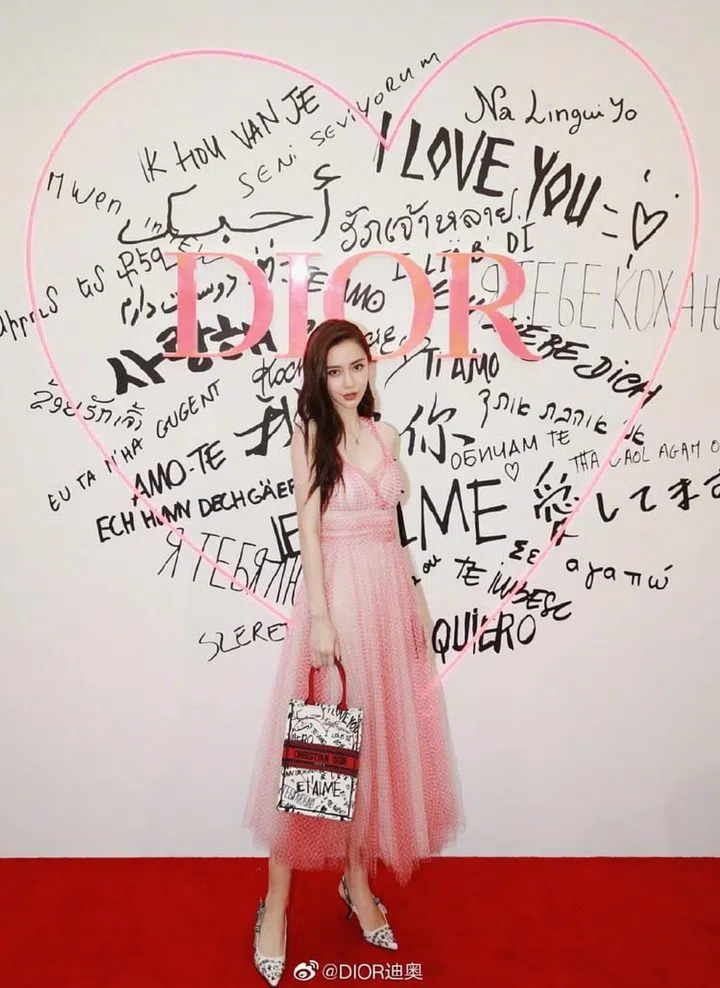 DIOR 形象大使 Angelababy 演绎2020年Dioramour 七夕系列特别款 Vertical Book Tote。照片/迪奥微博