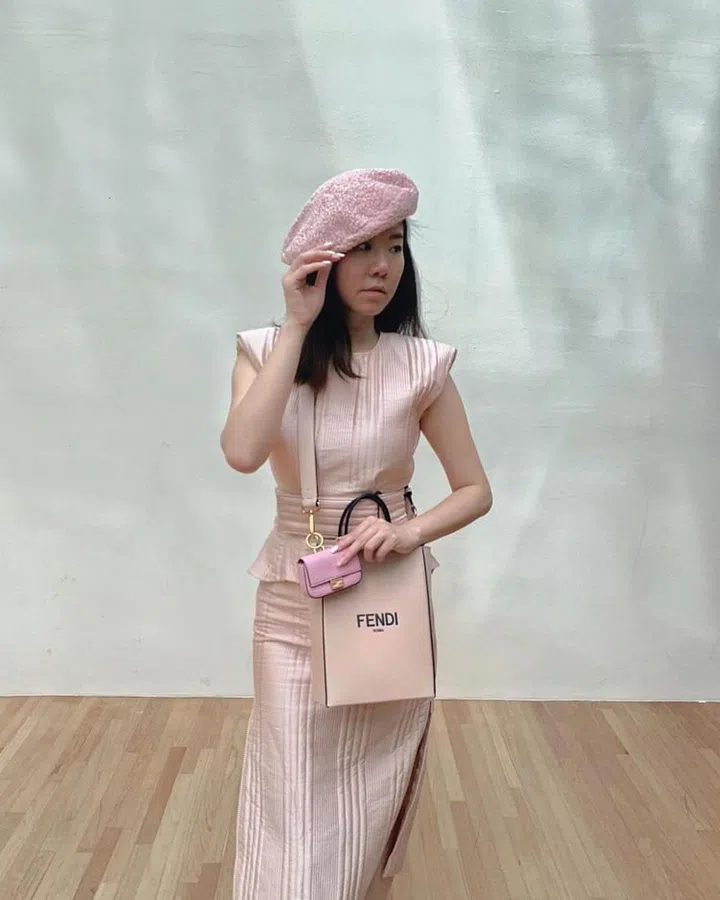 新加坡婚纱设计师Jessicacindy 斜背Fendi Pack 系列中的粉色小号购物袋。照片/@Jessicacindy_life
