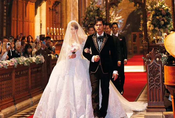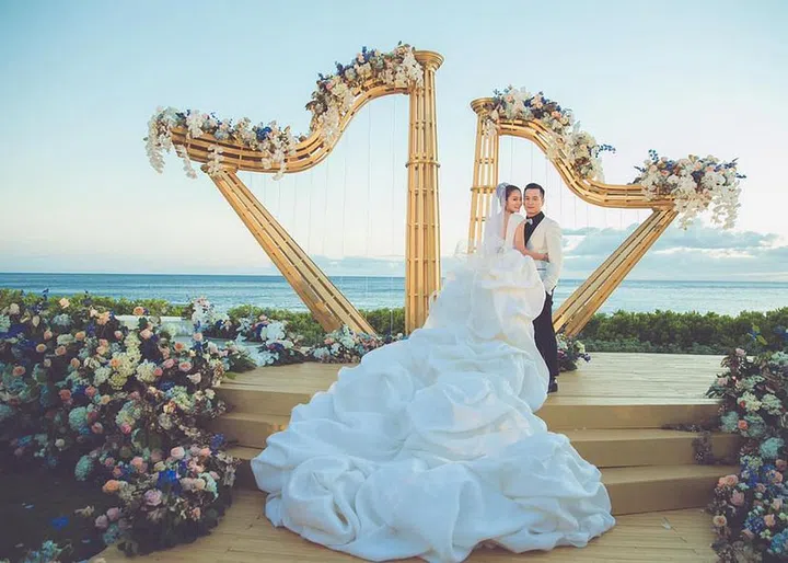台湾艺人安以轩和澳门富商陈荣炼2017年6月在夏威夷举办婚礼,多达200名亲友越洋祝贺。新娘子在婚礼上身着法国设计师Stephane Rolland量身定做的云朵婚纱,设有3米宽2米的白色拖尾裙,腰间还有象征完美结合的钻镶蝴蝶结,唯美梦幻。