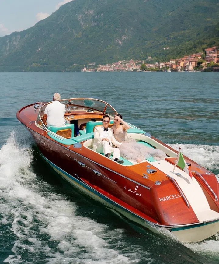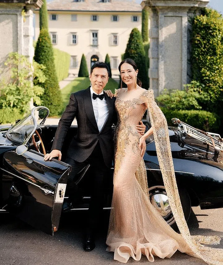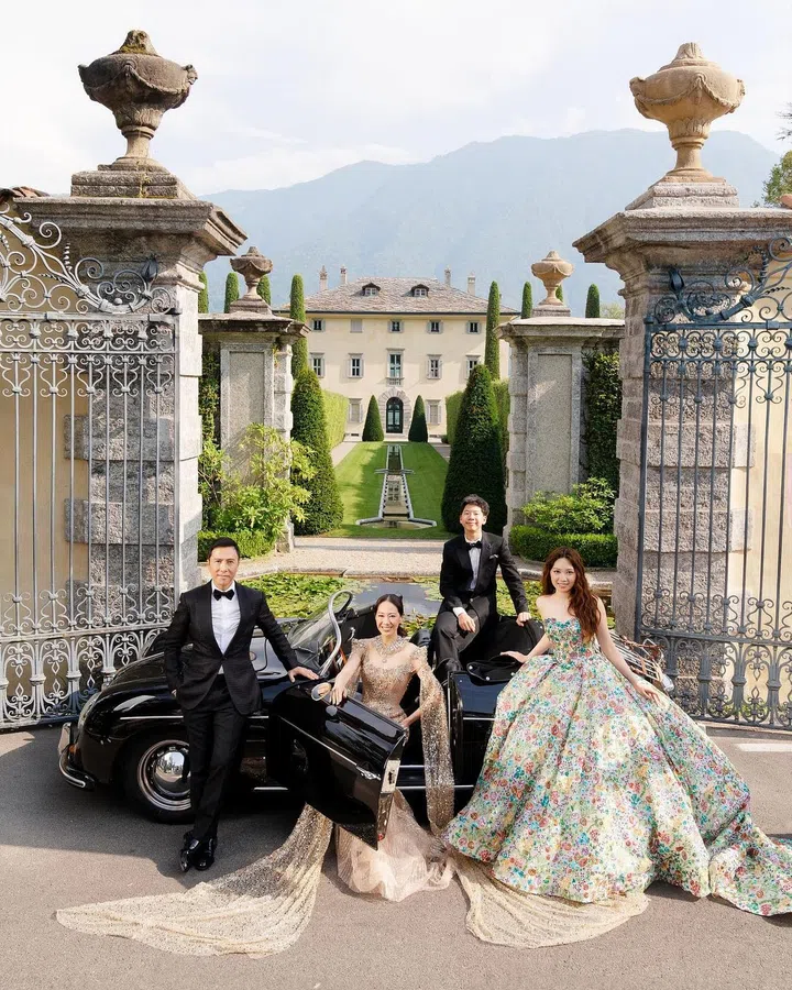 整场婚礼走的是古典奢华风,选址在科莫湖边的16世纪古堡Villa Balbiano,不仅是当地最受欢迎且昂贵的婚礼举办场地之一,还曾是古驰家族Aldo Gucci的住所,场地费价格不菲。甄子丹更出动游艇和豪车,在如同城堡般的华丽庄园中拍下这幸福的一刻。