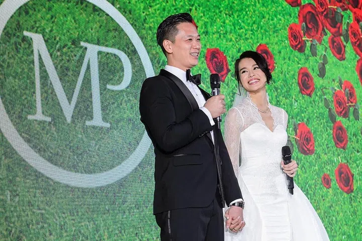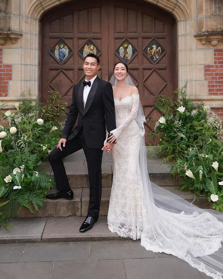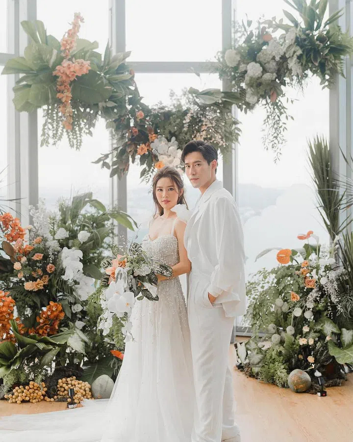 林慧玲与同龄圈外混血男友Matthew Webster在2022年11月27日于新加坡丽嘉登美年大酒店(The Ritz-Carlton, Millenia Singapore)举行盛大婚礼,宴请600多位宾客,一同见证小两口的幸福时刻。婚礼上,新娘选择了简约大方的Viktor & Rolf高定婚纱,以船形领口搭配合身剪裁,身后饰有蝴蝶结细节拖尾,衬托出优雅高贵的气质。