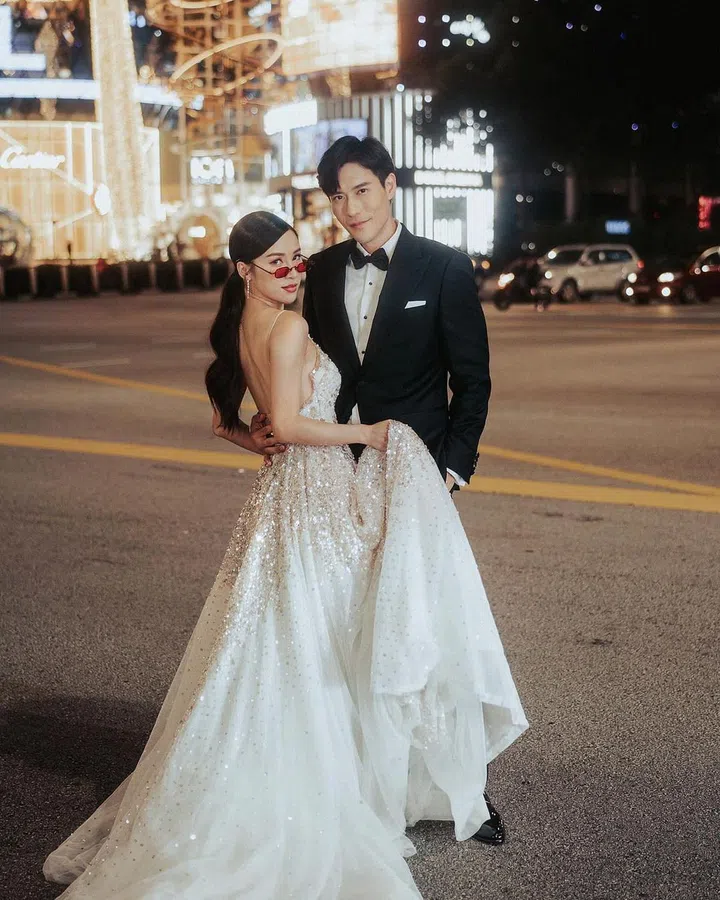 泰国“国民情侣”Mark Prin与Kimberley Anne Woltemas因合作多部电视剧成为荧幕情侣,两人爱情长跑10年,终于在2023年步入爱的殿堂,于意大利的Lake Como举行浪漫婚宴。新娘身为Dior品牌大使,自然选择了Dior为她打造的高级定制婚纱以及晚宴服。一共四套,其中主婚纱采用花卉凸花花边,配饰有精致刺绣的头带,让造型更加完美,一针一线都蕴含着浪漫情义。新郎Mark Prin则身着Tom Ford定制西服。