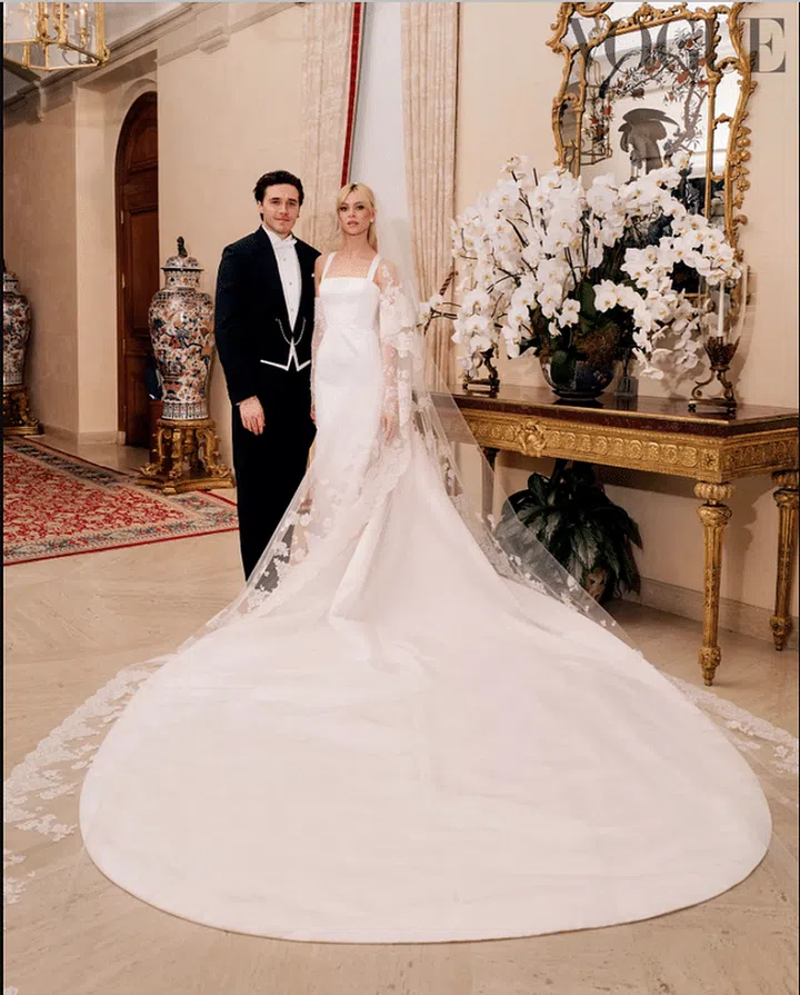 足球明星David Beckham的23岁长子Brooklyn Beckham在2020年向富豪千金Nicola Peltz求婚成功,因疫情影响延迟婚期,终于在2022年4月9日于弗罗里达棕榈滩的别墅举办豪华婚宴。新娘身穿Valentino高级定制婚纱,经过与品牌创意总监Pierpaolo Piccioli和团队一年时间的商讨,当中包括两次前往罗马总部和两次在美国试衣,最后打造出Nicola的梦幻礼服。新郎Brooklyn Beckham、爸爸David Beckham、两个弟弟Romeo Beckham及Cruz Beckham皆身穿Dior Men特别定制的西装亮相,展现绅士风格。