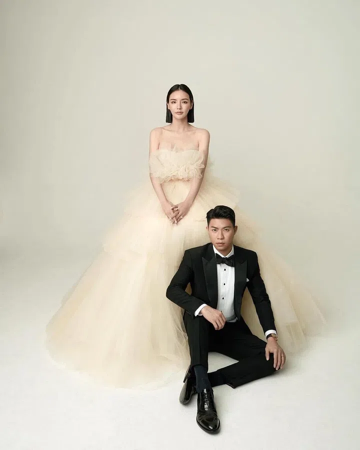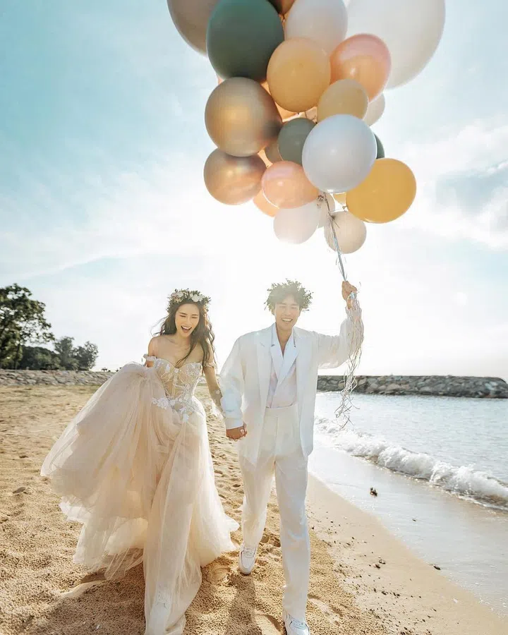 新加坡千金Kim Lim在2021年9月30日公开求婚画面,超浪漫奢华的求婚仪式,让她又惊又喜。时隔一个多月,她秀出与未婚夫拍摄的婚纱照,身着来自The Ivory Bridal婚纱店代理的Nicole + Felicia 高级定制礼服,上身以薄纱皱褶设计交织出细腻层次,梦幻轻盈的抹胸剪裁自然流露华丽氛围,衬托出高贵迷人的姿态。