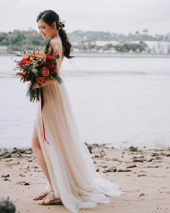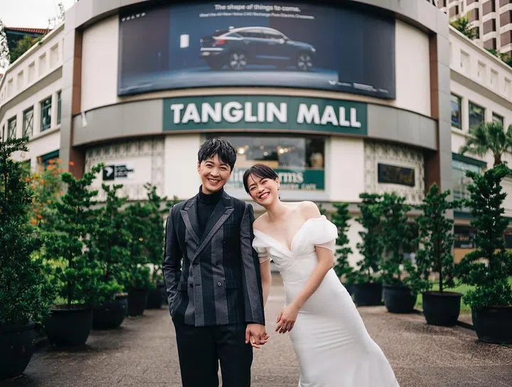 爱情长跑7年,本地艺人徐鸣杰和陈凤玲在2022年8月宣布订婚喜讯,随后在同年10月完婚。小两口特地回到定情之地Tanglin Mall拍摄一组婚纱照,女方身穿本地婚纱精品店The Ivory Bridal所代理的Newhite婚纱,以一字肩领口搭配利落的剪裁,高贵大方。来自洛杉矶的手工定制婚纱品牌Newhite,整体风格极简摩登,体现内外兼具的内敛优雅,为纯白婚纱赋予新的定义。