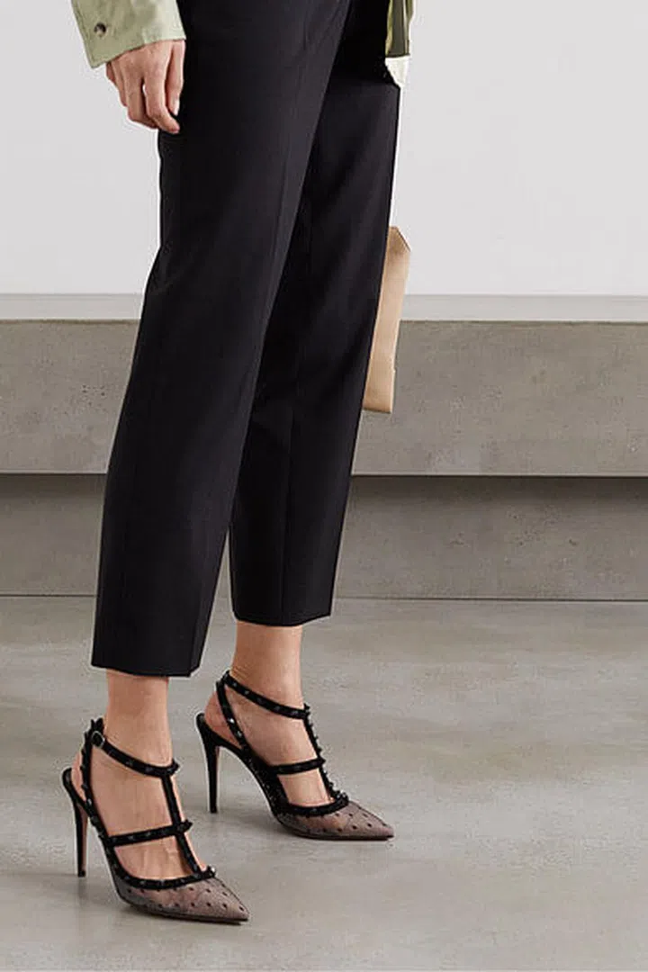 Valentino Garavani “Rockstud” 绒面革边饰圆点织花网布高跟鞋