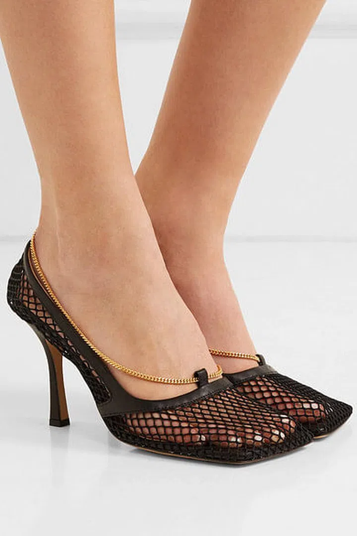 Bottega Veneta 带缀饰皮革边饰网眼高跟鞋