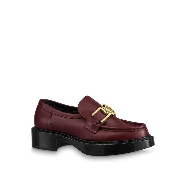 一年四季都可穿的Louis Vuitton Academy Loafer乐福鞋,充满70年代复古风情,酒红色牛皮鞋身,搭配夸张的皮革外底,点缀源自Dauphine手袋钩扣的LV Dauphine标识。