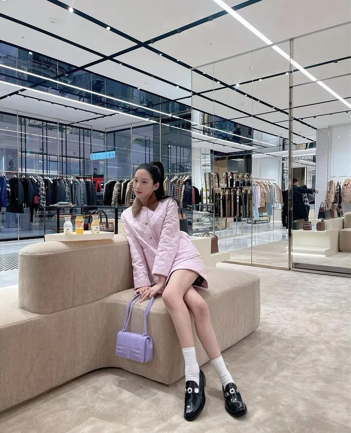 以乐福鞋搭白袜,是许多新世代最爱的搭配方式。韩国女星文佳煐(Mun Ka Young)早前出席品牌活动,一身穿搭均来自Burberry,粉嫩的薰衣草色外套裙装和单肩包相呼应,搭配白袜和乐福鞋,诠释“甜而不腻”的时尚风格。