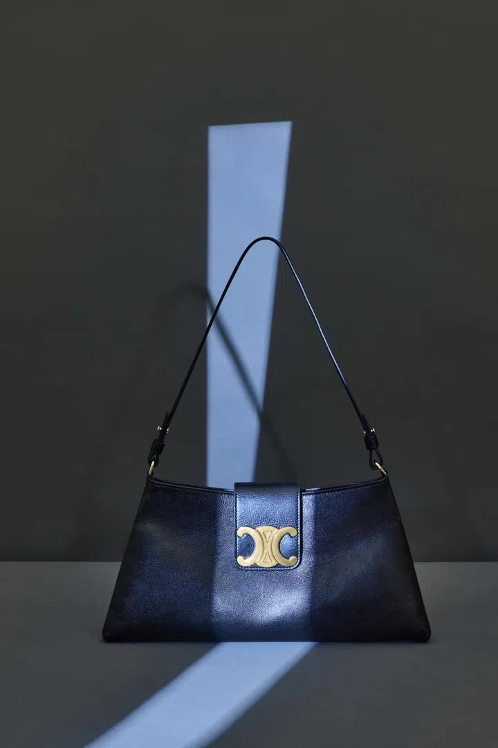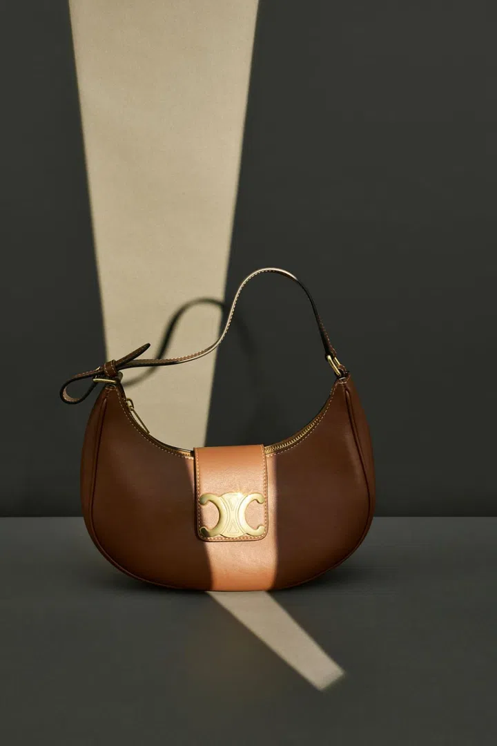 Ava Triomphe手袋首次亮相于今年的秋冬女装系列,沿袭品牌一贯的优雅隽永风格,将AVA手袋的月牙轮廓与Triomphe系列的金属凯旋扣相结合,塑造出洗练流畅的弧线设计,彰显90年代复古风格与摩登意蕴。光滑牛皮革凸显细腻质感,包型轻便,配搭可调节的肩带设计,从上班到约会轻松自如地切换,展现女性的时尚魅力。