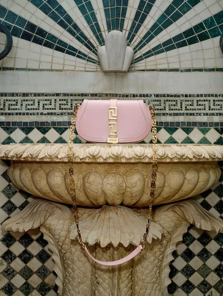 Versace 2022秋冬系列,品牌创意总监Donatella Versace以Atelier Versace的紧身胸衣为灵感打造出标志性的收腰设计,配上粗花呢、水晶和金属链条等经典元素,体现并强化了女性的力量。全新登场的Greca Goddess手袋系列,延续了Versace神话和奢华传统,将品牌的希腊回纹图案变成引人注目的金色金属装饰和链带,呈现在圆弧形的肩背包及长方形手拿包上,俐落大方的线条极具摩登现代气质。