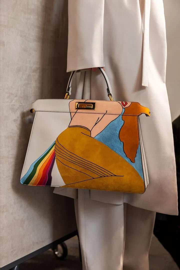 由设计师Kim Jones执掌的Fendi 2022春夏女装系列,从20世纪时尚插画师Antonio Lopez的作品中获得灵感,将抽象艺术线条注入成衣及配饰中,打造欢快自在的氛围。Fendi标志性的Peekaboo手袋成为展现 Antonio Lopez 作品及品牌精湛皮革工艺的画布,包包犹如生动的艺术画作,风格大胆而鲜明。